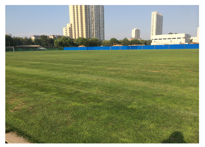 兩個球場對比明顯:其中一個球場使用優繪三次,幾乎沒有病斑;另一個球場使用優繪一次,正在發生腐霉病和夏季斑病,病斑較為明顯。