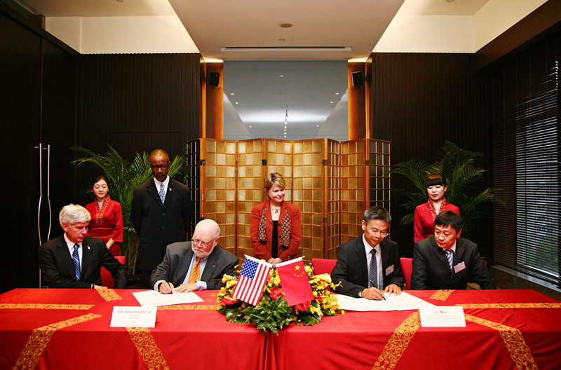 里克·斯奈德州長最后發表賀辭:“本人上任州長兩年以來,出訪亞洲,尤其是中國,已經是三次了。每一次,我們都廣交朋友。今天,榮幸地參加并見證綠友集團和本州優秀企業木霸克公司的簽約儀式,非常高興。自我上任以來,本州大力促進企業發展,改善企業營商環境,促進企業對外交流,特別是和中國企業展開廣泛合作。一千萬密州人民熱情好客,我們有370多個機械行業的研發中心,數十萬機械工程師,世界上三大汽車企業的總部設在密州。密州背靠風光秀麗的密西根州大湖,盛產優質楓糖,盛產林木,還擁有最先進的生物質能發電技術。作為生物質能原料加工的設備生產廠家,希望木霸克公司和綠友集團的合作,能夠給我們兩國帶來互惠互利的商業利益,更希望你們攜手合作,為建設綠色中國盡力。當然,我相信,今晚詹姆斯·舒梅克先生可能更感興趣的話題是和李敏先生探討如何將木霸克的市場份額也提到和約翰迪爾的草坪設備一樣高,甚至更多。”