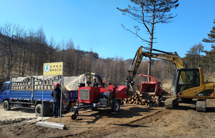 綠友集團(tuán)總部森防裝備事業(yè)部、售后服務(wù)部、撫順綠友園林機(jī)械有限公司協(xié)同在撫順市大伙房實(shí)驗(yàn)林場(chǎng)現(xiàn)場(chǎng)給參會(huì)人員講解、演示了GREENMAN CM15R病疫木粉碎機(jī)、CH25C病疫木粉碎機(jī)在山場(chǎng)就地粉碎處理感染松材線蟲(chóng)病疫木方案,與會(huì)嘉賓紛紛記錄、拍照,索取資料,積極響應(yīng)國(guó)家關(guān)于松材線蟲(chóng)病疫木山場(chǎng)就地粉碎處理的相關(guān)政策。