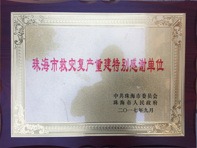 9月,綠友集團(tuán)得到了中共珠海市委員會(huì)、珠海市人民政府的表彰,被評(píng)為“珠海市救災(zāi)重建特別感謝單位”。